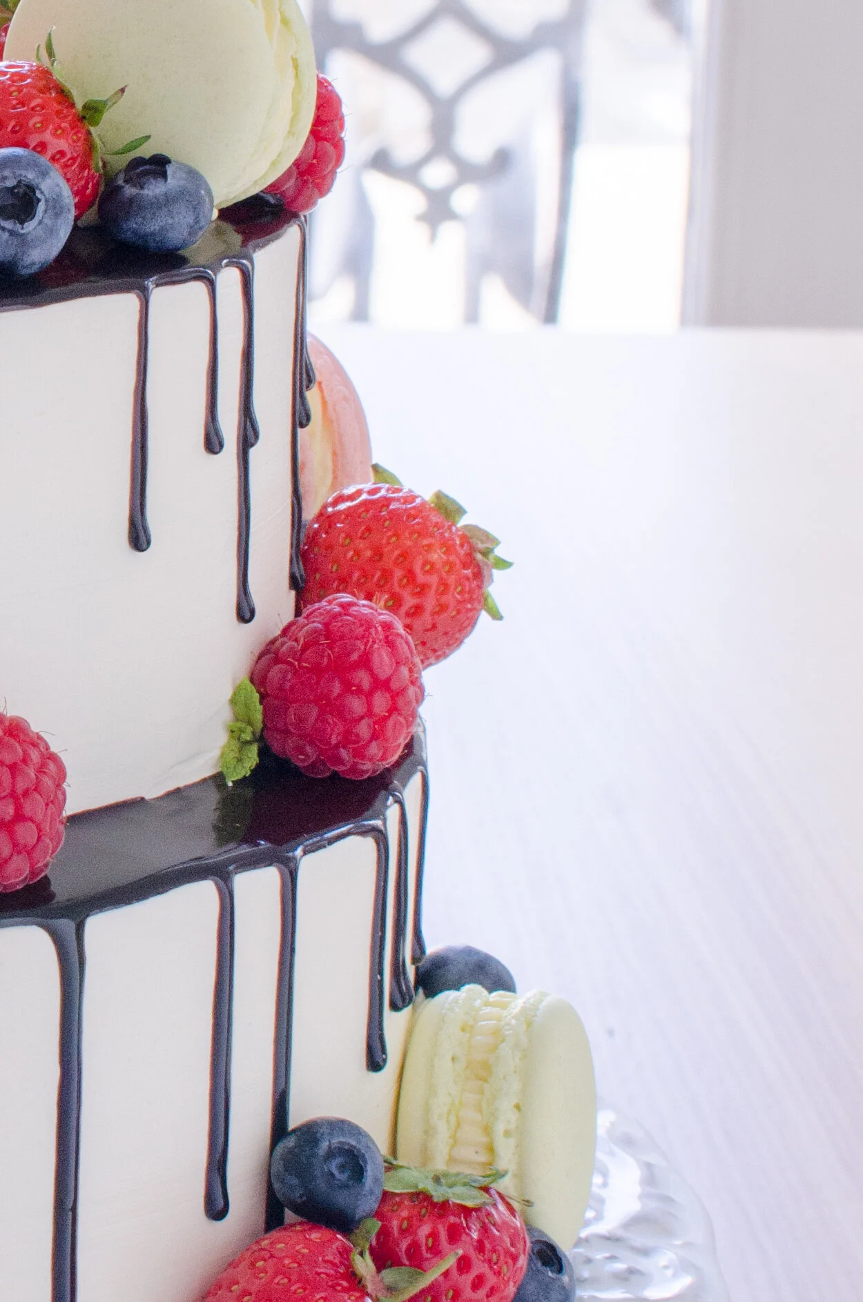 When it comes to mark a luxury 50th, everyone surely needs a very, very special cake! Two Tier? Yes! Seasonal berries? Yes! Delicate macarons? Why not! Oh what about shiny drips? MUST!