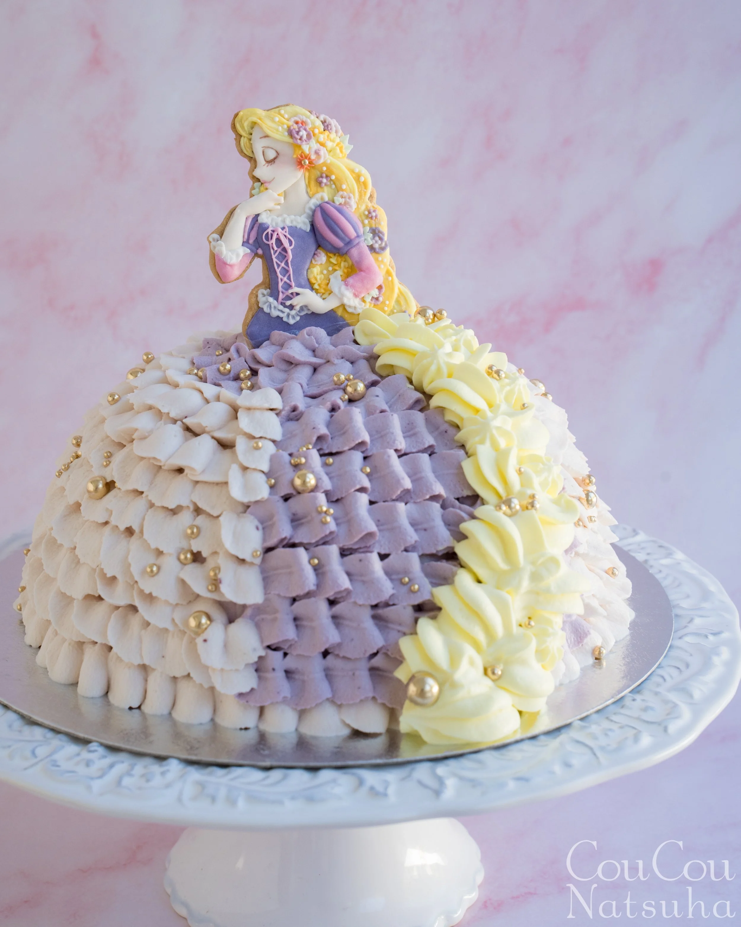 Instead of a flat image, I sculpted Rapunzel's face, body, and iconic golden hair separately, almost like a real doll. Her hair was meticulously piped in layers to create beautiful depth and fullness.